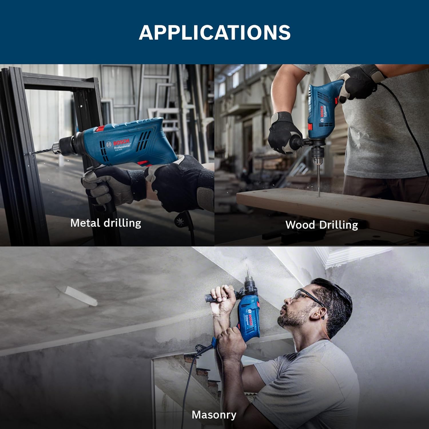- Applications: The BOSCH electric corded impact drill is highly versatile, suitable for drilling into masonry such as bricks, metal, and wood. It can also be employed for hole sawing and driving screws into metal and wood.