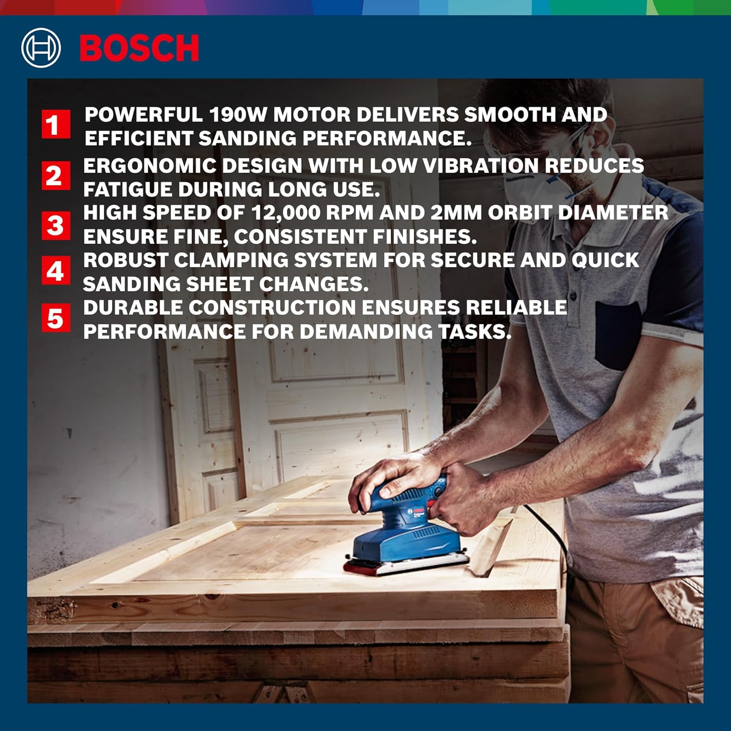 Bosch GSS 2300 Corded Electric Orbital Sander, 190W, 12,000 rpm, 24,000 o